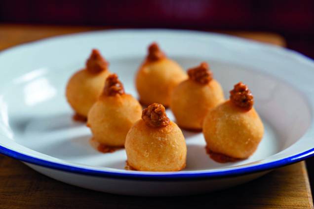 2/3 Bombons de parmesão, do Cardaro Panini: servidos com pasta de tomate seco e o embutido nduja (Ricardo Dangelo/Veja SP)